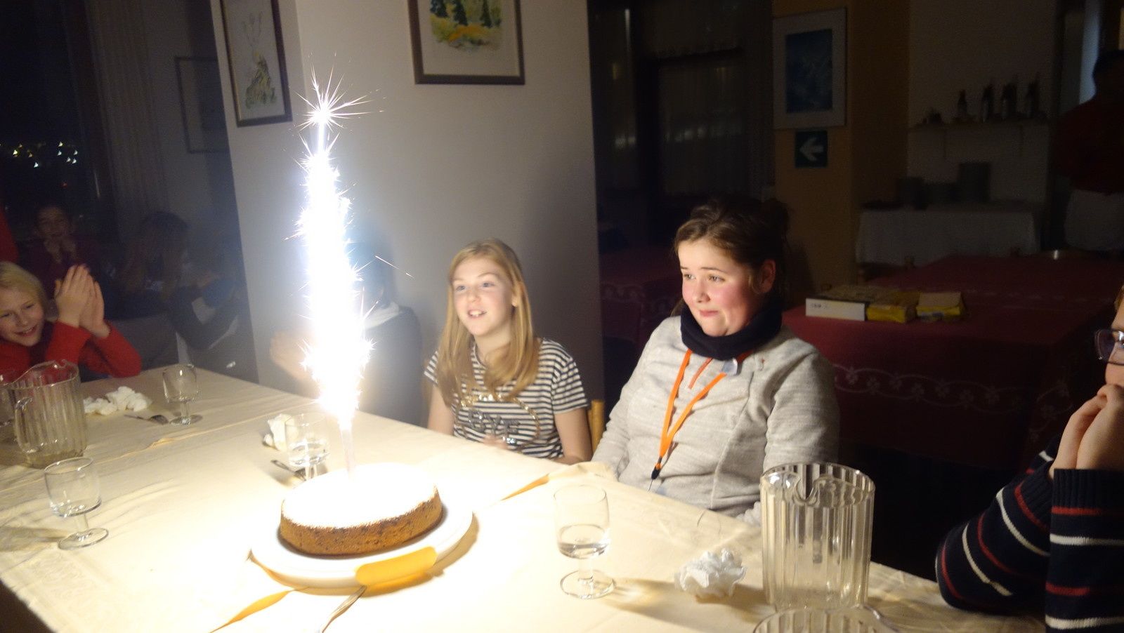 Il faisait aussi beaucoup plus froid ! Nous avons terminé à 17h au coucher du soleil sur la montagne : c’est beau !Ce soir nous avons fêté l’anniversaire de Catherine et nous sommes partis à la luge ! Et oui, même le soir !